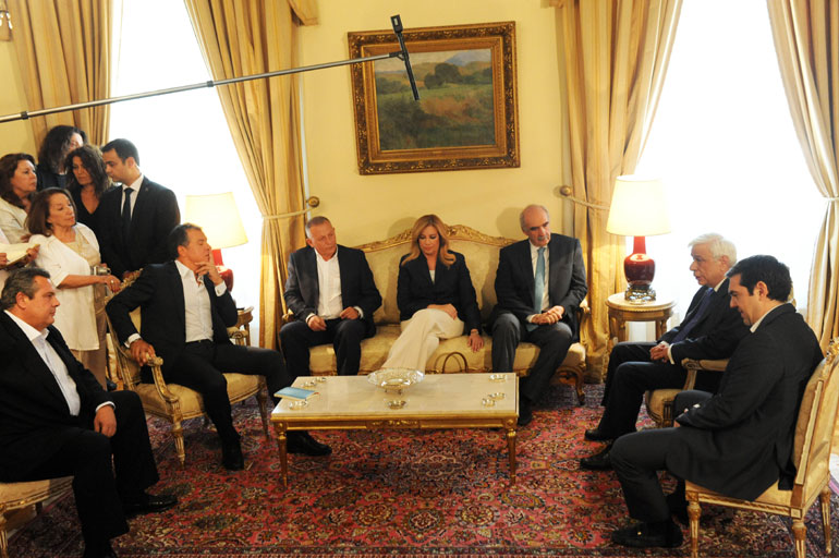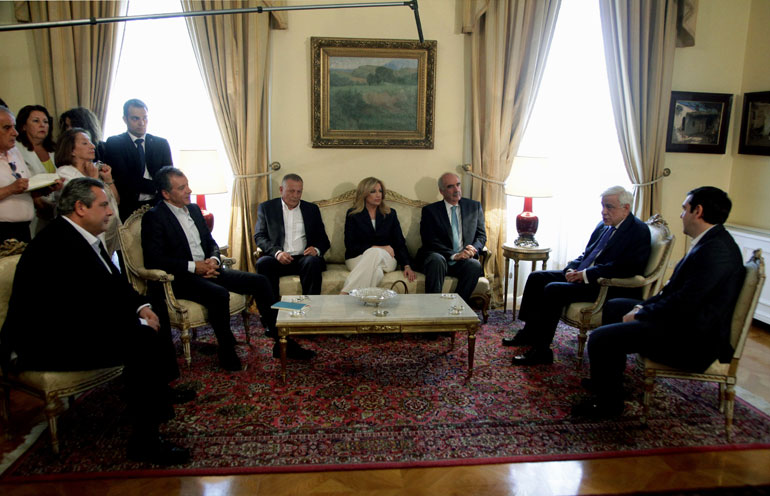 Ο πρωθυπουργός Αλέξης Τσίπρας, ήταν ο πρώτος που αποχώρησε από το Προεδρικό Μέγαρο, χωρίς ωστόσο να κάνει δηλώσεις και ακολούθησε ο επικεφαλής του «Ποταμιού», Σταύρος Θεοδωράκης και η πρόεδρος του ΠΑΣΟΚ κα Φώφη Γεννηματά.