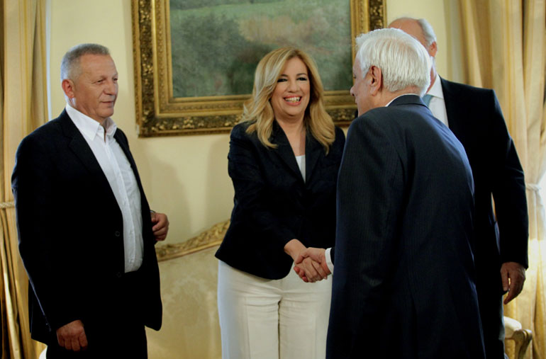 «Όλοι μαζί χτίζουμε για το αύριο. Δεν είναι ώρα για μεγάλα λόγια» δήλωσε η κα Γεννηματά μετά την ολοκλήρωση του γεύματος στο Προεδρικό Μέγαρο και συμπλήρωσε «Ο δρόμος είναι ένας, ο δρόμος της συνεννόησης. Να προχωρήσουμε χωρίς πολώσεις χωρίς διλήμματα».