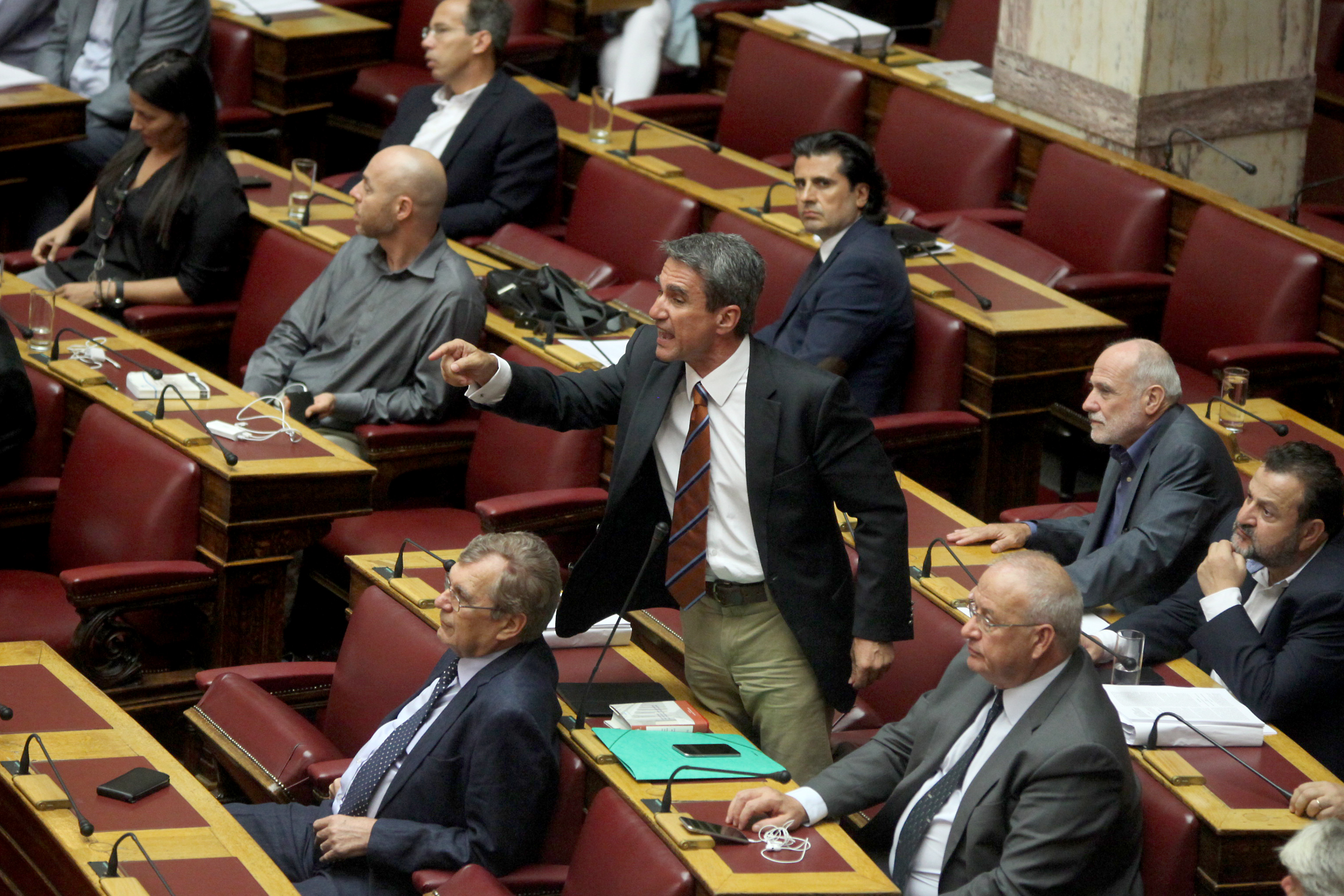 Ο βουλευτής του ΠΑΣΟΚ πετάχτηκε από τα έδρανα και φώναζε, με τον πρόεδρο της Βουλής, Αλέξη Μητρόπουλο, να προσπαθεί να καθησυχάσει τους συναδέλφους του και να λέει στον σύντροφό του Ευκλείδη Τσακαλώτο: «Γιατί ξεκινήσατε έτσι, ηρεμία».