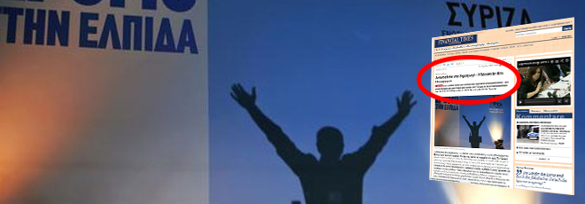Με τον πλέον προκλητικό και ωμό τίτλο «Αντισταθείτε στον δημαγωγό», η γερμανική έκδοση της εφημερίδας «Financial Times» παρεμβαίνει δύο 24ωρα πριν από τη διεξαγωγή των ελληνικών εκλογών και απευθύνει μία πρωτοφανή σύσταση στους ψηφοφόρους, γεγονός που προκάλεσε πληθώρα αντιδράσεων από τον πολιτικό κόσμο.
