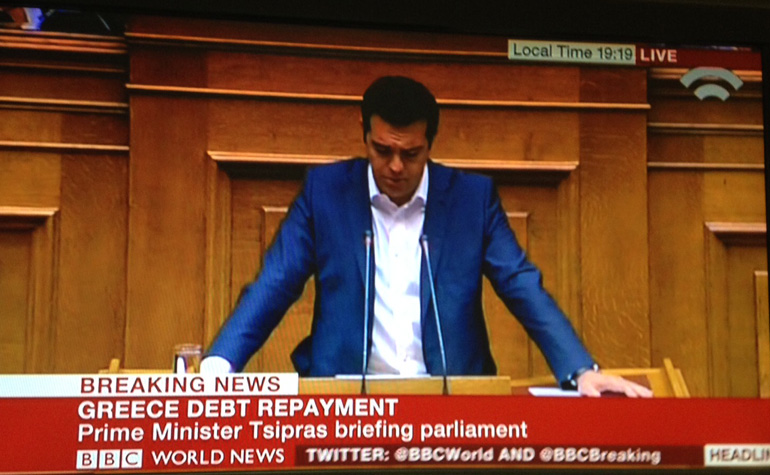 Για ώρα ευθύνης όλων, αλλά και για συμφωνία που «θα απεμπλέξει την κοινωνία και την οικονομία από το υφεσιακό σπιράλ», μίλησε στη Βουλή ο Πρωθυπουργός Αλέξης Τσίπρας. Όπως είπε: «Παρά το προχθεσινό πισωγύρισμα με την πρόταση των θεσμών είμαστε πιο κοντά από ποτέ στην επίτευξη συμφωνίας». Στη συνέχεια ακολούθησαν οι τοποθετήσεις των πολιτικών αρχηγών, ενώ λίγο πριν από τις 22:00 ο Αλέξης Τσίπρας πραγματοποίησε τη δευτερολογία του.