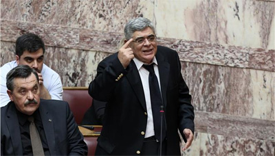 Ο ΓΓ της Χρυσής Αυγής Νίκος Μιχαλολιάκος στη συζήτηση προ ημερησίας διατάξεως για τη διαπραγμάτευση, απευθυνόμενος στην κυβέρνηση υπογράμμισε πως «πέρασαν 4 μήνες και δεν οδηγήσατε στη λύση του προβλήματος».