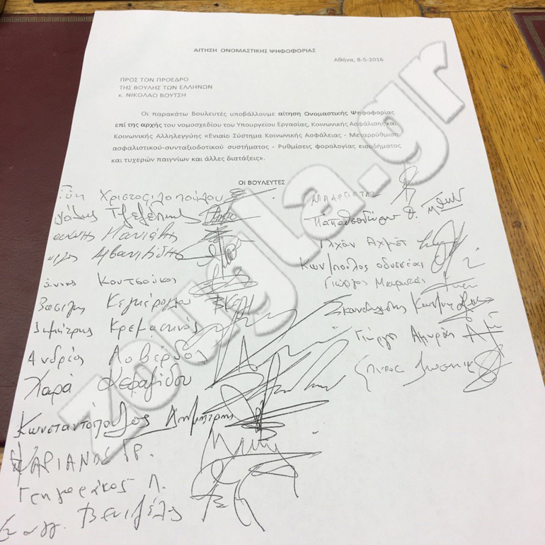 Αίτημα ονομαστικής ψηφοφορίας για το νομοσχέδιο με την ασφαλιστική και φορολογική μεταρρύθμιση κατέθεσαν στη Βουλή από κοινού η Δημοκρατική Συμπαράταξη και το Ποτάμι.
