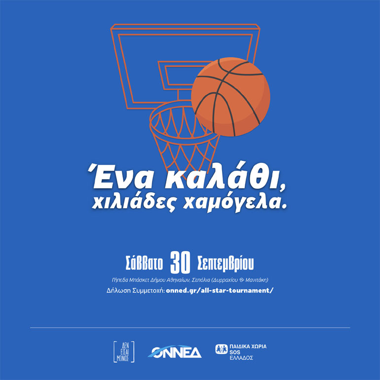 Τη σειρά δράσεων «Δεν είσαι μόνος», συνεχίζει η ΟΝΝΕΔ με μία νέα πρωτοβουλία. Συγκεκριμένα, διοργανώνει τουρνουά μπάσκετ 3on3 με φιλανθρωπικό σκοπό στις 30 Σεπτεμβρίου. Το τουρνουά θα πραγματοποιηθεί στα γήπεδα μπάσκετ του Δήμου Αθηναίων στα Σεπόλια, (Δυρραχίου & Μανιτάκη).