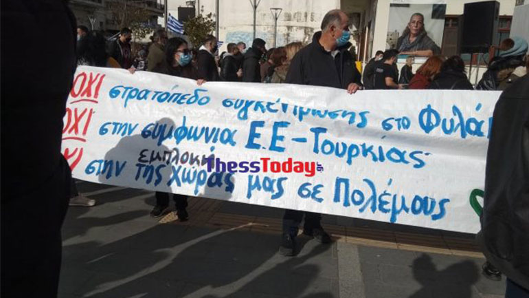 Την ώρα που ο υπουργός Μετανάστευσης βρισκόταν στο δημαρχείο, συγκεντρώθηκαν εκατοντάδες άτομα στην κεντρική πλατεία, πολλοί εκ των οποίων είναι μέλη της ακροδεξιάς Εθνικής Λαϊκής Συνείδησης της οποίας ηγείται ο Λαγός. Παρά τα δρακόντεια μέτρα ασφαλείας, κατά την έξοδο του ο κ. Μηταράκης αποδοκιμάστηκε έντονα, ενώ κάποιοι πέταξαν αυγά και καφέδες στο αυτοκίνητο στο οποίο επέβαινε.