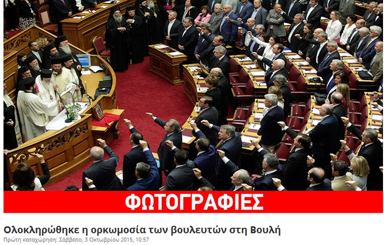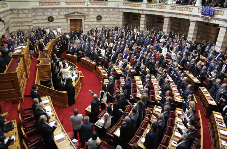Στην Ολομέλεια της Βουλής τελέστηκε αγιασμός, χοροστατούντος του αρχιεπισκόπου Ιερώνυμου, και ακολούθησε η τελετή της ορκωμοσίας. Άλλοι βουλευτές έδωσαν όρκο στο Ευαγγέλιο, οι δύο μουσουλμάνοι βουλευτές στο Κοράνι και αρκετοί -κυρίως από τον ΣΥΡΙΖΑ και το ΚΚΕ- έδωσαν πολιτικό όρκο.