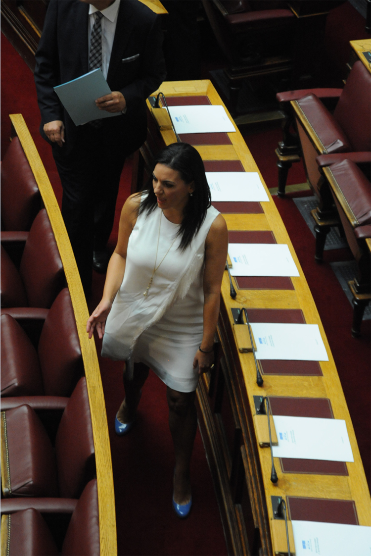 Κατάμεστα και τα θεωρεία από συγγενείς, φίλους και παιδιά βουλευτών, αλλά και τα έδρανα των κρατικών υπαλλήλων, με πρώτους στη σειρά την πρώην υπηρεσιακή πρωθυπουργό Βασιλική Θάνου, που είχε δίπλα της τον πρώην πρόεδρο της Βουλής Δημήτρη Σιούφα.