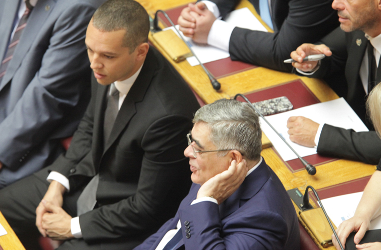 Στις καρέκλες μπροστά από τα υπουργικά έδρανα επέλεξαν να καθίσουν ο υφυπουργός Παιδείας Θεοδόσης Πελεγρίνης και ο αναπληρωτής υπουργός Οικονομικών Τρύφων Αλεξιάδης.