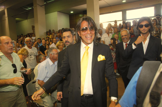 Με μαύρο κοστούμι, λευκό πουκάμισο και ασορτί κίτρινη γραβάτα με μαντήλι, εμφανίστηκε στην ορκωμοσία του σήμερα ο νεοκλεγείς Δήμαρχος Μαραθώνα Ηλίας Ψινάκης.