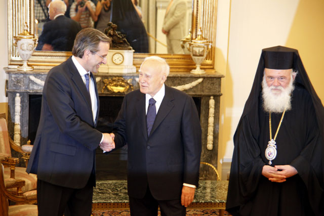 (Αντώνης Σαμαράς, Κάρολος Παπούλιας και ο Αρχιεπίσκοπος Ιερώνυμος)
