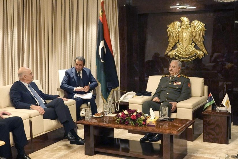 Ο υπουργός Εξωτερικών, Νίκος Δένδιας, μετέβη το πρωί της Κυριακής (22/12) στη Βεγγάζη της Λιβύης, όπου συναντήθηκε με τον επικεφαλής του Λιβυκού εθνικού στρατού, στρατάρχη Χαλίφα Χαφτάρ, σύμφωνα με ανακοίνωση του υπουργείου.