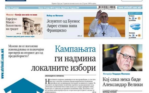 Στην σκοπιανή εφημερίδα «Ουτρίνσκι Βέσνικ» παραχώρησε συνέντευξη ο Θεόδωρος Πάγκαλος όπου μίλησε για το ζήτημα της ονομασίας της ΠΓΔΜ.