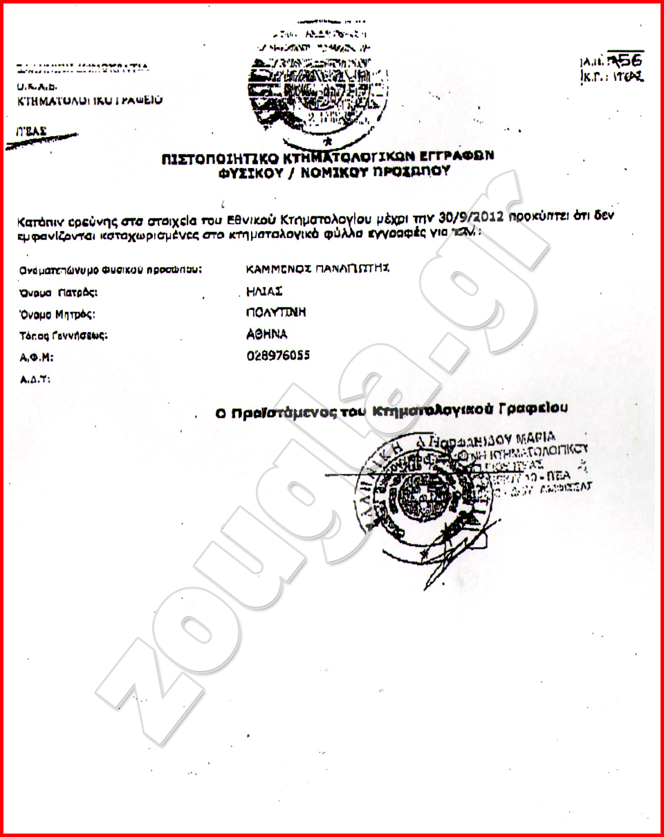 Επειδή, όπως προκύπτει από τις δηλώσεις πόθεν έσχες μου, τις οποίες ασφαλώς και έχετε στην κατοχή σας και τελούν σε κάθε περίπτωση εις γνώσιν σας, ΟΥΔΕΠΟΤΕ, ΤΟΣΟ ΕΓΩ ΟΣΟ ΚΑΙ Η ΣΥΖΥΓΟΣ ΜΟΥ, ΕΙΧΑΜΕ Ή ΕΧΟΥΜΕ ΣΤΗΝ ΙΔΙΟΚΤΗΣΙΑ ΜΑΣ ΚΑΝΕΝΑ ΑΠΟΛΥΤΩΣ ΑΚΙΝΗΤΟ ΣΤΗΝ ΠΕΡΙΟΧΗ ΤΟΥ ΓΑΛΑΞΙΔΙΟΥ, ΙΤΕΑΣ ΚΑΘΩΣ ΚΑΙ ΤΗΣ ΕΥΡΥΤΕΡΗΣ ΠΕΡΙΟΧΗΣ ΤΟΥ ΝΟΜΟΥ ΦΩΚΙΔΟΣ, ΚΑΙ ΕΝ ΓΕΝΕΙ ΣΤΕΡΕΑΣ ΕΛΛΑΔΟΣ! ΤΑ ΑΝΩΤΕΡΩ, ΔΕ, ΑΠΟΔΕΙΚΝΥΟΝΤΑΙ ΜΑΛΙΣΤΑ ΚΑΙ ΑΠΟ ΑΝΤΙΣΤΟΙΧΕΣ ΒΕΒΑΙΩΣΕΙΣ ΤΟΥ ΟΙΚΕΙΟΥ-ΑΡΜΟΔΙΟΥ ΥΠΟΘΗΚΟΦΥΛΑΚΕΙΟΥ ΓΑΛΑΞΙΔΙΟΥ ΚΑΙ ΙΤΕΑΣ, ΤΙΣ ΟΠΟΙΕΣ ΕΧΩ ΕΙΣ ΧΕΙΡΑΣ ΜΟΥ ΚΑΙ ΦΕΡΟΥΝ ΣΗΜΕΡΙΝΗ ΗΜΕΡΟΜΗΝΙΑ.