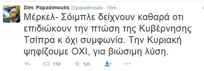 «Μέρκλε και Σόιμπλε επιδιώκουν να ρίξουν την κυβέρνηση» έγραψε ο Δημήτρης Παπαδημούλης στο twitter...