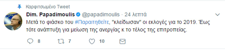 To tweet του Δημήτρη Παπαδημούλη: