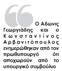 Ένας από τους υπουργούς που έμαθε τα… νέα από τα χείλη του πρωθυπουργού ήταν ο Άδωνις Γεωργιάδης, ο οποίος ενημερώθηκε πως τη θέση του παίρνει ο Μάκης Βορίδης, ο μέχρι πρότινος κοινοβουλευτικός εκπρόσωπος της ΝΔ. Εκτός κυβέρνησης βρέθηκε και η υφυπουργός Υγείας Ζέττα Μακρή, η οποία αντικαταστάθηκε από τον Λεωνίδα Γρηγοράκο (μέχρι πρότινος αναπληρωτής Υπουργός Εσωτερικών).