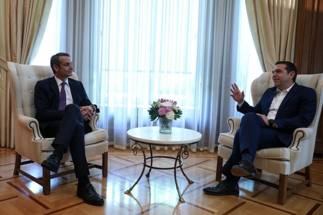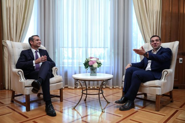 Ο κ. Μητσοτάκης, αμέσως μετά την ορκωμοσία του στο Προεδρικό Μέγαρο, κατευθύνθηκε στο Μέγαρο Μαξίμου. Στην είσοδο του κτηρίου, στην κορυφή της σκάλας, τον περίμενε ο απερχόμενος πρωθυπουργός Αλέξης Τσίπρας, με τον οποίο αντάλλαξε χειραψία.