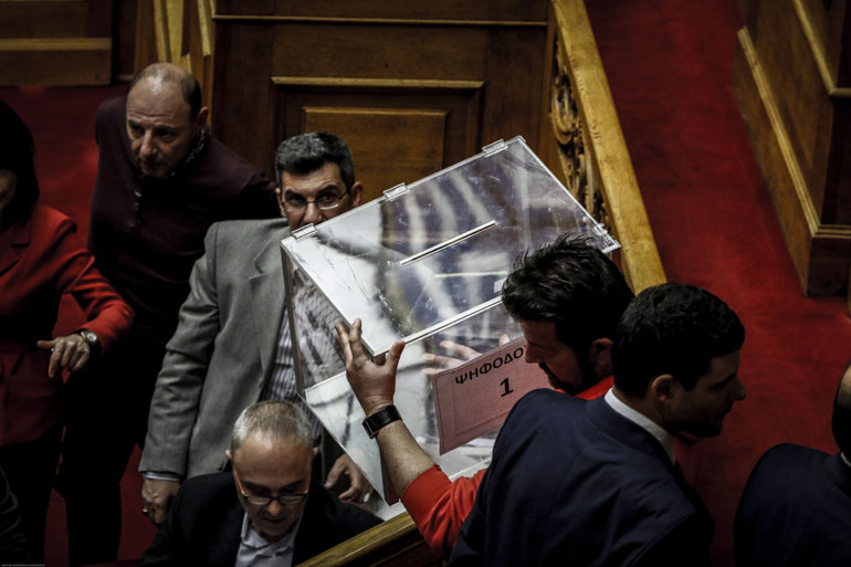 Η ανακοίνωση των αποτελεσμάτων από τον α’ αντιπρόεδρο της Βουλής, Γιώργο Βαρεμένο: