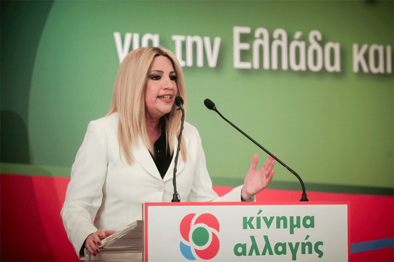 Η πρόεδρος του ΚΙΝΑΛ, δεν φείσθηκε της κριτικής της προς τη ΝΔ και τον Κ. Μητσοτάκη λέγοντας χαρακτηριστικά: «Αγωνιζόμαστε απέναντι στην δεξιά, στην Νέα Δημοκρατία. Απέναντι στην προσπάθεια του κ. Μητσοτάκη να μετατρέψει τις εκλογές σε εσωτερικό δημοψήφισμα: Για να κρύψει μέσω της πόλωσης και του διχασμού, ότι είναι αποφασισμένος να συνεχίσει τις ίδιες πολιτικές, που μας επέβαλαν οι πιο συντηρητικοί κύκλοι της Ευρώπης. Για να κρύψει τις ευθύνες του κόμματος του για την κρίση. Μετά και την αμετάκλητη αθώωση του Γεωργίου, καμία θεωρία συνωμοσίας δεν μπορεί να σταθεί. Η κατασπατάληση του δημοσίου χρήματος από την Κυβέρνηση Καραμανλή το 2004-09 οδήγησε τη χώρα ένα βήμα πριν από την καταστροφή. Και βέβαια θέλει να κρύψει ότι το Ευρωπαϊκό λαϊκό κόμμα ευθύνεται για την κρίση που βιώνει σήμερα η Ευρώπη και ο υποψήφιος τους για την προεδρία, ο κ. Βέμπερ, είναι αυτός που αντιμετώπισε με σκληρότητα τη χώρα μας τα πρώτα χρόνια της κρίσης», εξήγησε.