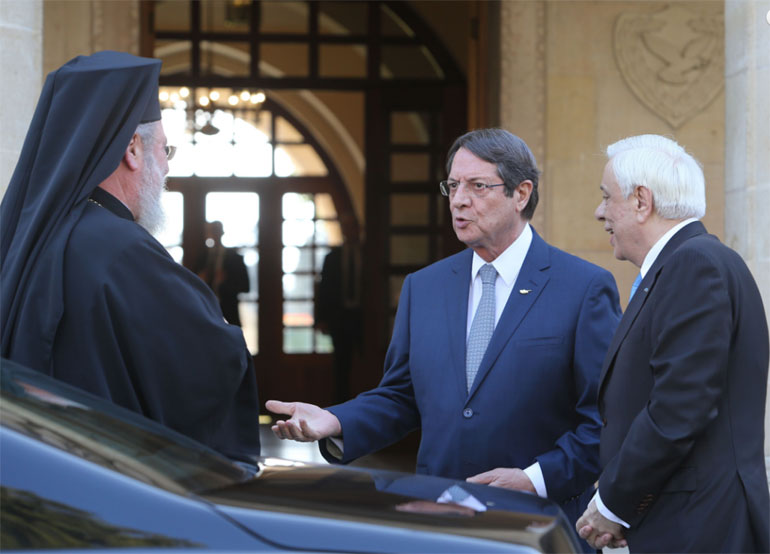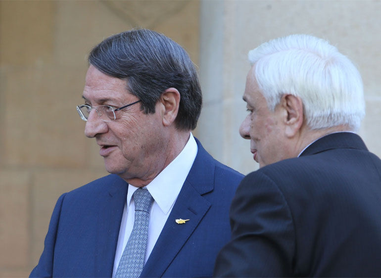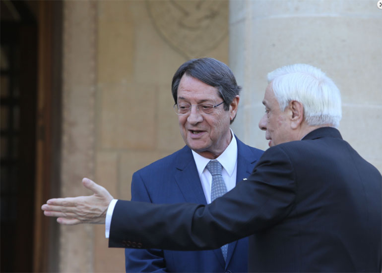 Την κοινή θέση Ελλάδας και Κύπρου για λύση χωρίς εγγυήσεις και τουρκικά στρατεύματα επανέλαβαν ο Πρόεδρος της Ελληνικής Δημοκρατίας Προκόπης Παυλόπουλος και ο Κύπριος πρόεδρος Νίκος Αναστασιάδης έπειτα από συνάντηση που είχαν την Πέμπτη στη Λευκωσία.