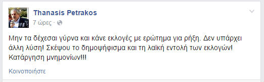 Παράλληλα, ο βουλευτής Μεσσηνίας ζητεί από τον Αλέξη Τσίπρα να προσφύγει στις κάλπες με ερώτημα για ρήξη.