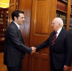 Δέκα λεπτά πριν από τις 14.00 το μεσημέρι, ο Αλέξης Τσίπρας διέβη το κατώφλι του Προεδρικού Μεγάρου, για να λάβει τη διερευνητική εντολή από τον Κάρολο Παπούλια. Κατά την ημίωρη συνάντησή τους, ο κ. Τσίπρας δήλωσε: «Είναι μια ιστορική στιγμή για την Αριστερά και για το λαϊκό κίνημα, αλλά και μεγάλη ευθύνη και για μένα προσωπικά, αν αναλογιστεί κανείς ότι ο προηγούμενος ηγέτης της Αριστεράς που έλαβε διερευνητική εντολή ήταν ο αείμνηστος Χαρίλαος Φλωράκης».