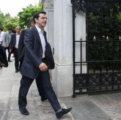 Δέκα λεπτά πριν από τις 14.00 το μεσημέρι, ο Αλέξης Τσίπρας διέβη το κατώφλι του Προεδρικού Μεγάρου, για να λάβει τη διερευνητική εντολή από τον Κάρολο Παπούλια. Κατά την ημίωρη συνάντησή τους, ο κ. Τσίπρας δήλωσε: «Είναι μια ιστορική στιγμή για την Αριστερά και για το λαϊκό κίνημα, αλλά και μεγάλη ευθύνη και για μένα προσωπικά, αν αναλογιστεί κανείς ότι ο προηγούμενος ηγέτης της Αριστεράς που έλαβε διερευνητική εντολή ήταν ο αείμνηστος Χαρίλαος Φλωράκης».