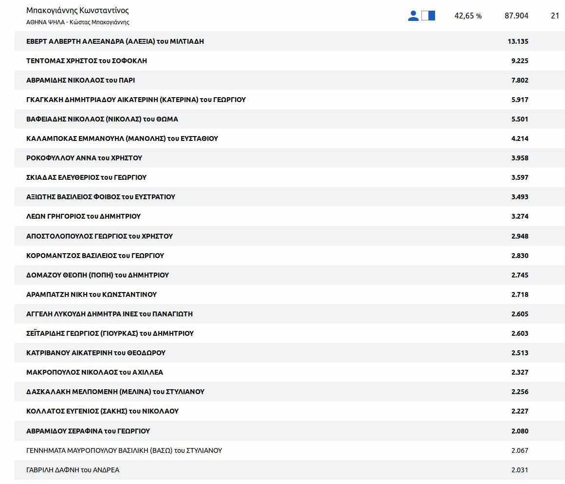- Κώστας Μπακογιάννης- Αθήνα Ψηλά: 21 δημοτικοί σύμβουλοι