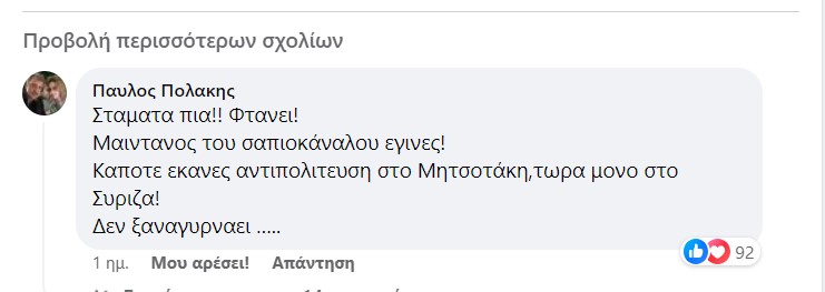 «Σταμάτα πια!! Φτάνει! Μαϊντανός του σαπιοκάναλου έγινες», έγραψε ο Παύλος Πολάκης κάτω από την ανάρτηση του Χρήστου Σπίρτζη, με βίντεο από τις συγκεκριμένες δηλώσεις.