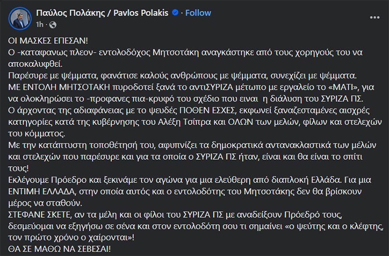 Ακολουθεί ολόκληρη η ανάρτηση του Πολάκη: