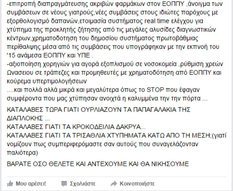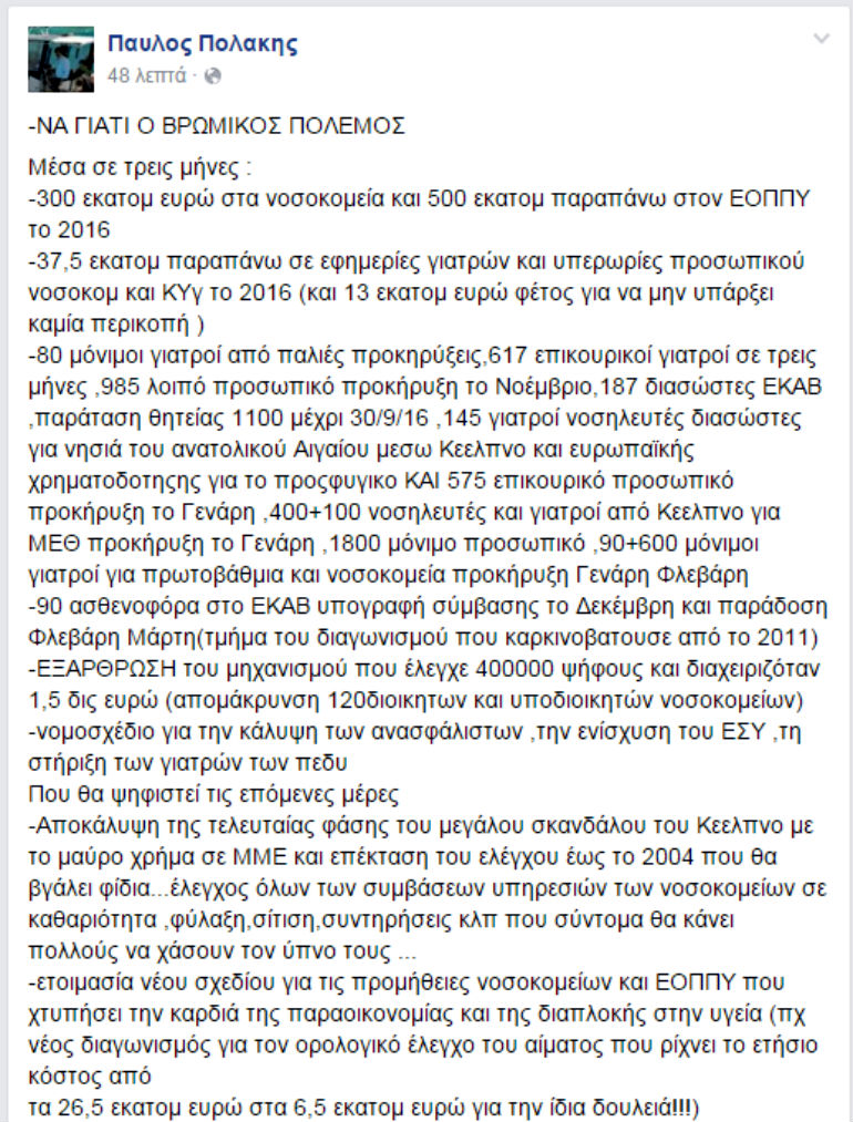 Ολόκληρη η ανάρτηση του Παύλου Πολάκη:
