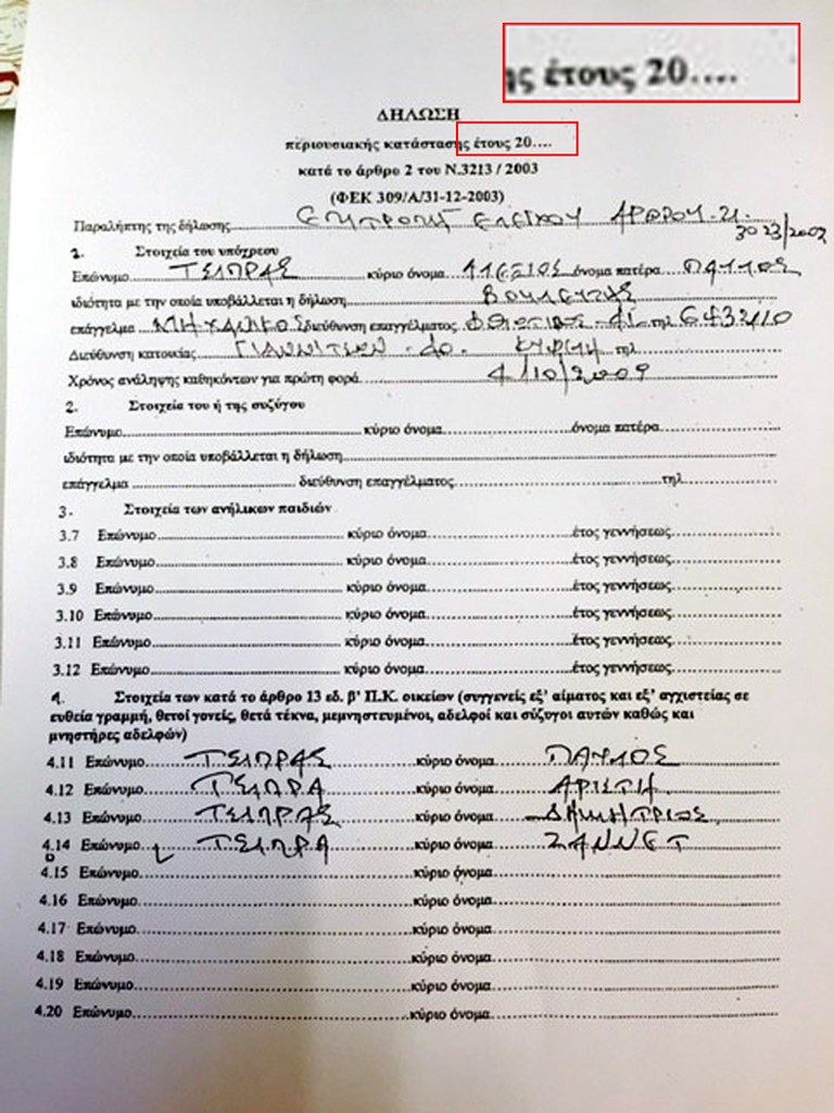 Στο νέο σάλο που προκλήθηκε το Μαξίμου διευκρίνισε ότι πρόκειται για πόθεν έσχες που κατατέθηκε το 2010 και αφορά στο 2009 και ως εκ τούτου δεν είχε υποχρέωση ο κ. Τσίπρας να το ξαναδηλώσει.