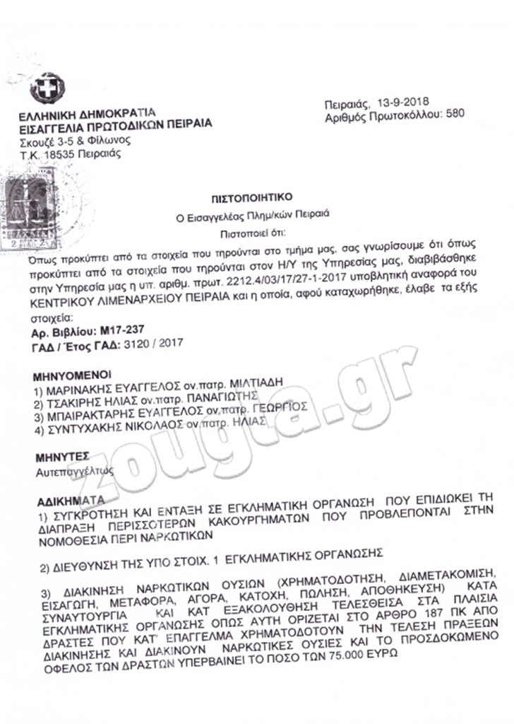 Το κατηγορητήριο που προκύπτει από το πόρισμα της εισαγγελέως Πειραιώς Ειρήνης Τζίβα είναι πολύ