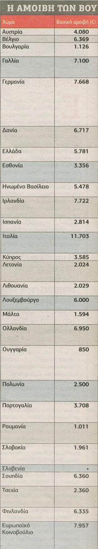 Καλύτερα αμειβόμενοι, με βάση τη «βασική αμοιβή», είναι οι Ιταλοί, αφού παίρνουν 11.703 ευρώ μηνιαίως. Οι Έλληνες δεν πάνε πίσω…