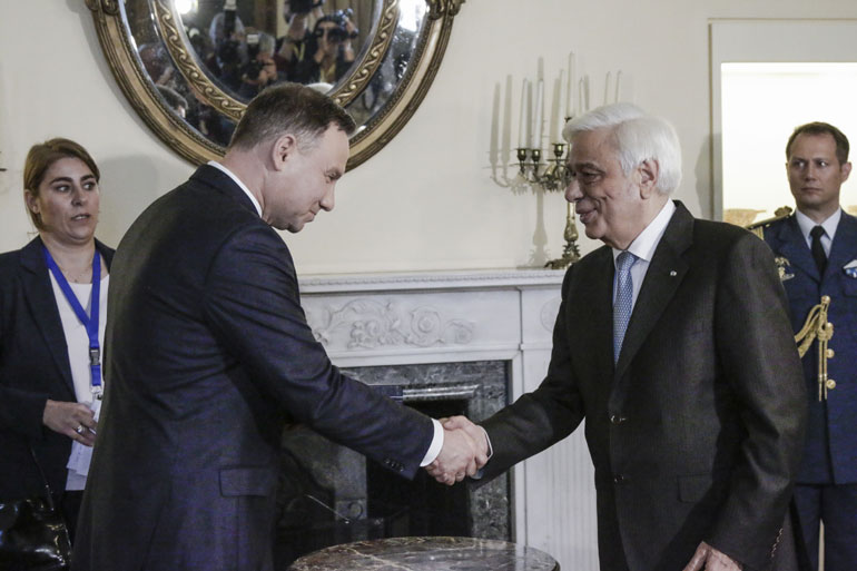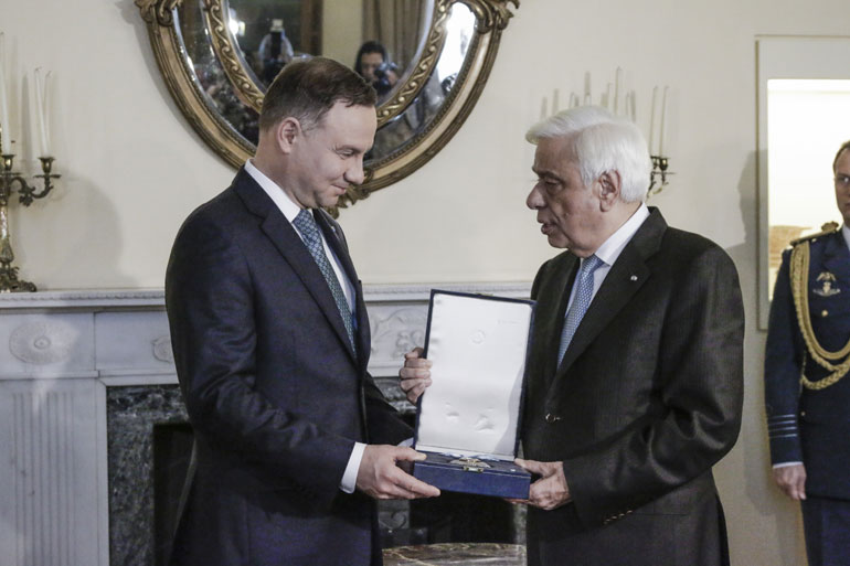 Οι δύο άνδρες επιβεβαίωσαν το εξαιρετικό κλίμα στις σχέσεις μεταξύ Ελλάδας και Πολωνίας επιβεβαίωσαν κατά την συνάντησή τους, στο πλαίσιο της διήμερης επίσκεψης του Πολωνού Προέδρου στην Αθήνα.