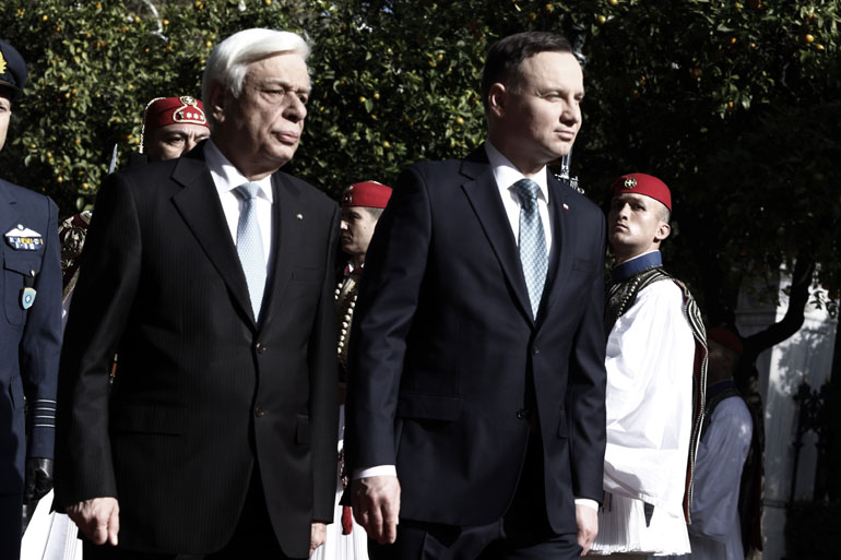 «Εμείς, οι Έλληνες, μένουμε πιστοί στην ευρωπαϊκή μας πορεία, και είμαστε αποφασισμένοι να συμβάλουμε στη δημιουργία μιας ισχυρής Ευρωπαϊκής Ένωσης, γιατί είμαστε πραγματικοί Ευρωπαίοι και δεν ταξιδεύουμε με σημαίες ευκαιρίας» τόνισε ο Πρόεδρος της Δημοκρατίας, Προκόπης Παυλόπουλος, κατά τη συνάντησή του με τον Πολωνό ομόλογό του, Άντρζεϊ Ντούντα, στο Προεδρικό Μέγαρο.
