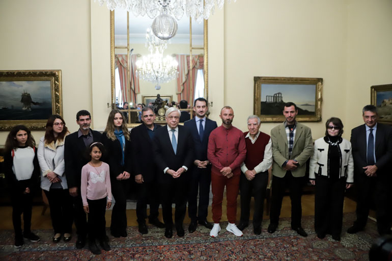 Τους τρεις αλλοδαπούς αλιείς στους οποίους απονομήθηκε η ελληνική υπηκοότητα σ’ ένδειξη αναγνώρισης για την μέχρις αυτοθυσίας βοήθειά τους προς τους πυρόπληκτους, κατά την διάρκεια της πυρκαγιάς στην Ανατολική Αττική, υποδέχθηκε στο Προεδρικό Μέγαρο, ο Πρόεδρος της Δημοκρατίας, Προκόπης Παυλόπουλος.