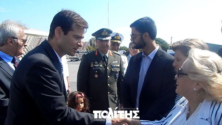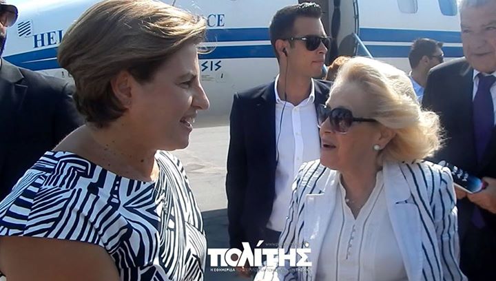 Στο αεροδρόμιο την υποδέχτηκαν ο υπηρεσιακός αναπληρωτής υπουργός Περιβάλλοντος Κ. Μουσουρούλης, η περιφερειάρχης Β. Αιγαίου Χρ. Καλογήρου, ο δήμαρχος Χίου Μ. Βουρνούς, ο διοικητής της ΑΣΔΕΝ και ο αρχηγός του Λιμενικού Σώματος.
