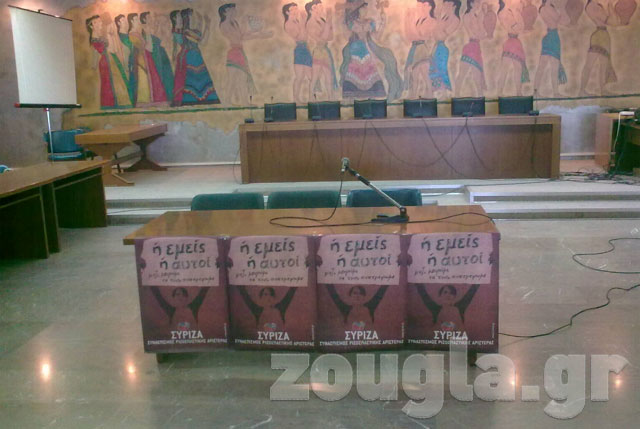 Ολοκληρώθηκε λίγο μετά τις 13.30 η ομιλία με θέμα «Ή ΕΜΕΙΣ Ή ΑΥΤΟΙ μαζί μπορούμε να τους ανατρέψουμε», στην αίθουσα του Δημοτικού Συμβουλίου του Δημαρχείου Δραπετσώνας.