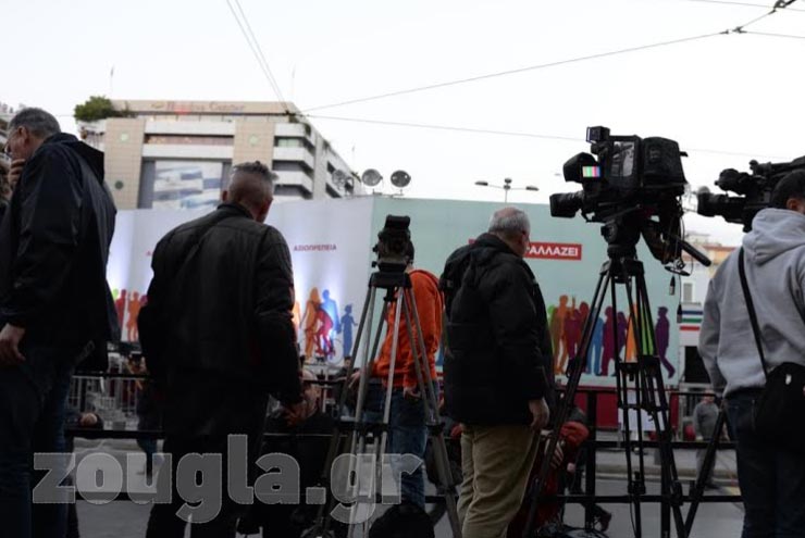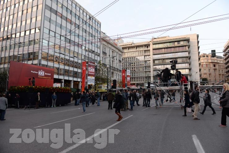 Δείτε φωτογραφίες από τις προετοιμασίες του ΚΚΕ και του ΣΥΡΙΖΑ στο κέντρο της Αθήνας: