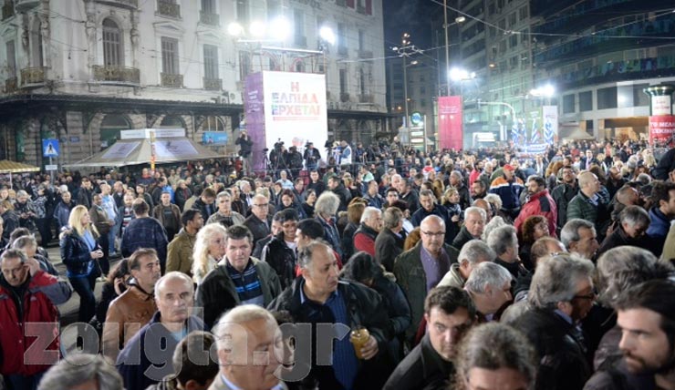 «Η ανατροπή στην Ελλάδα λέγεται ΣΥΡΙΖΑ, στην Ισπανία Podemos» και πρόσθεσε στα ισπανικά «Hasta la Victoria»|