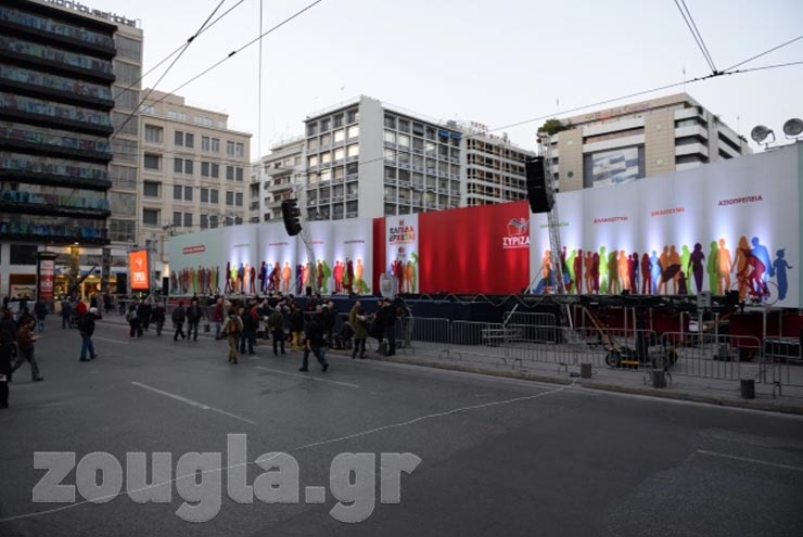Δείτε φωτογραφίες από τις προετοιμασίες του ΚΚΕ και του ΣΥΡΙΖΑ στο κέντρο της Αθήνας: