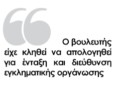 Ο βουλευτής είχε κληθεί, μετά από προθεσμία, να απολογηθεί στις εφέτες ανακρίτριες Ι. Κλάπα και Μ. Δημητροπούλου κατηγορούμενος για ένταξη και διεύθυνση εγκληματικής οργάνωσης.