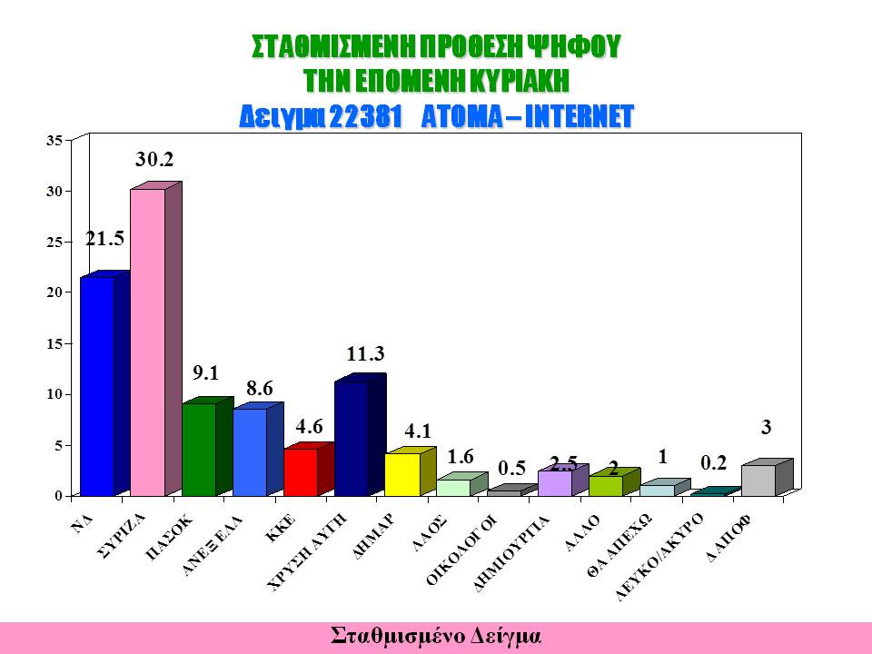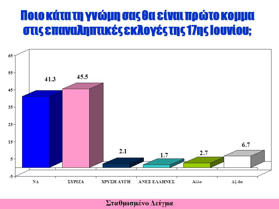 Η διαφορά μεταξύ πρώτου και δεύτερου σε αυτήν την παράσταση νίκης ανέρχεται στο 4,2%. Εντύπωση προκαλεί πώς αν με εξαιρετικά μεγάλη διαφορά, στην τρίτη θέση των εκτιμήσεων για την πρωτιά έρχεται το κόμμα των Ανεξαρτήτων Ελλήνων και όχι πια το ΠΑΣΟΚ.