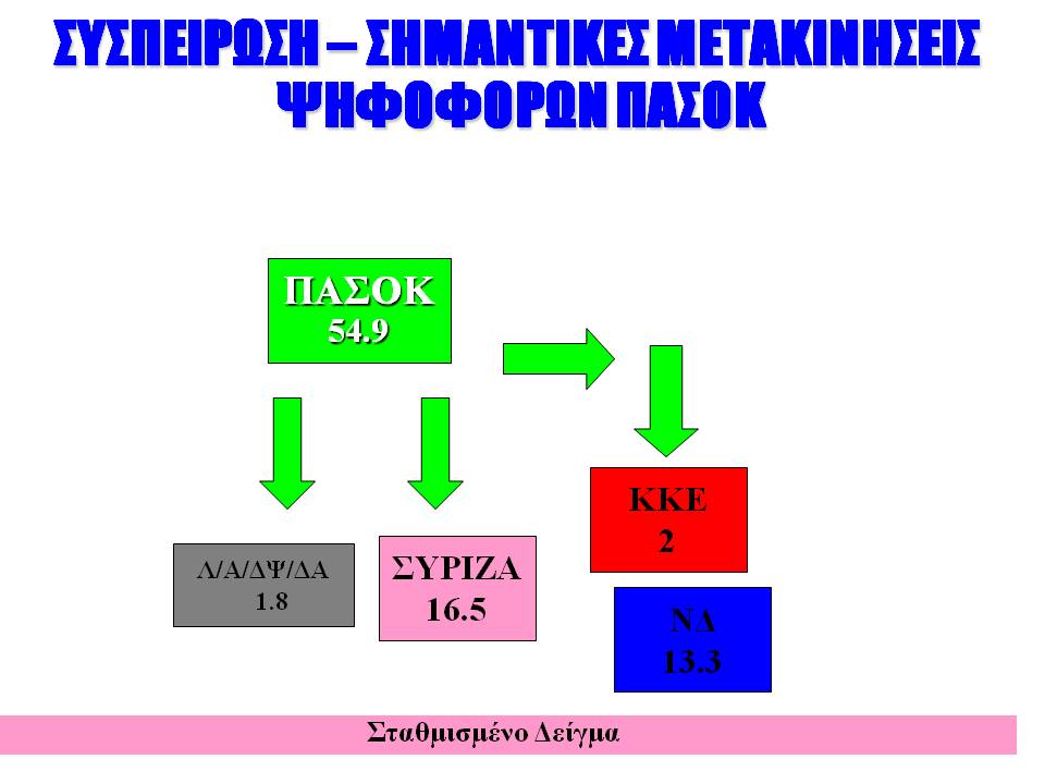 Το ΠΑΣΟΚ εξακολουθεί να αιμορραγεί προς τον ΣΥΡΙΖΑ. Το ποσοστό της συσπείρωσης του είναι χαμηλό και φθάνει το 64,8%.