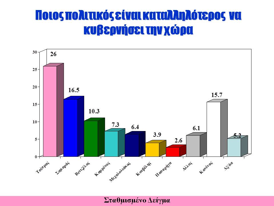 Στο επόμενο διάγραμμα καταγράφεται η αξιολόγηση των πολιτικών αρχηγών ως προς την ικανότητα τους να κυβερνήσουν την χώρα.