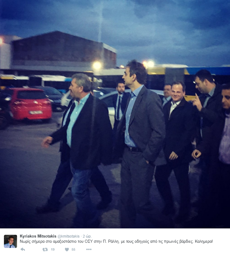 Ο κ. Μητσοτάκης έβγαλε και φωτογραφίες με τους οδηγούς από τις πρωινές βάρδιες, τις οποίες και ανέβασε στον προσωπικό του λογαριασμό στο Twitter.