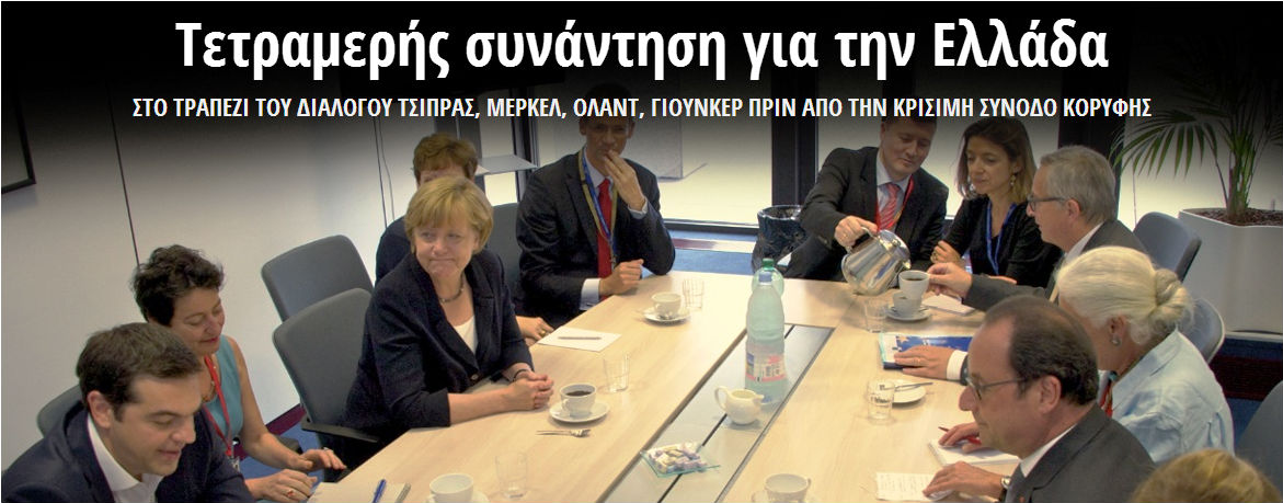 Της Συνόδου Κορυφής προηγήθηκε τετραμερής συνάντηση μεταξύ του Έλληνα πρωθυπουργού, του Γάλλου προέδρου, Φρανσουά Ολάντ, της Γερμανίδας καγκελαρίου, Άνγκελα Μέρκελ και του επικεφαλής της Κομισιόν, Ζαν-Κλοντ Γιουνκέρ, όπου, σύμφωνα με το Μέγαρο Μαξίμου, συζητήθηκε ο «οδικός χάρτης» προκειμένου να υπάρξει αποτέλεσμα.