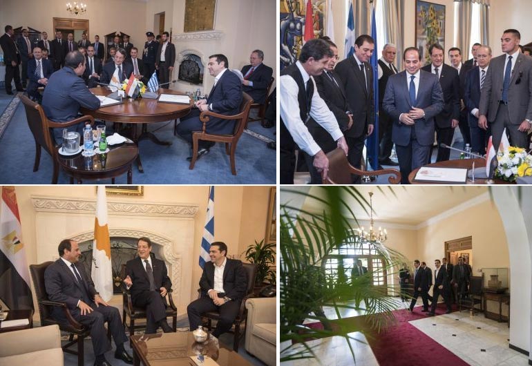 Νωρίτερα, ολοκληρώθηκε στη Λευκωσία η τριμερής συνάντηση Κύπρου-Ελλάδας-Αιγύπτου σε επίπεδο αρχηγών χωρών για την αναβάθμιση των σχέσεων στον οικονομικό, πολιτικό, ενεργειακό και διπλωματικό τομέα. Μετά τη συνάντησή τους ο Νίκος Αναστασιάδης, ο Αλέξης Τσίπρας και ο Φατάχ Αλ Σίσι αναμένεται να υπογράψουν νέα διακήρυξη.