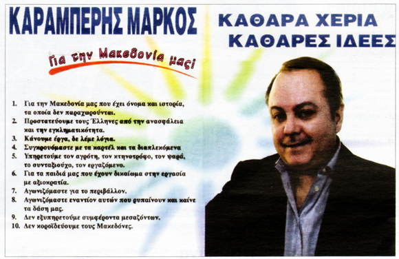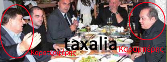 Σε μία άλλη φωτογραφία, ο Γιώργος Καρατζαφέρης, πρόεδρος του ΛΑ.Ο.Σ., φαίνεται να διασκεδάζει στη Θεσσαλονίκη παρέα με τον Μάρκο Καραμπέρη. Σύμφωνα με στελέχη του κόμματος, την ένταξη του Μάρκου Καραμπέρη στο ψηφοδέλτιο του ΛΑ.Ο.Σ. αποφάσισε ο ίδιος ο πρόεδρος του κόμματος, αν και στο Περιστύλιο της Βουλής ψιθυρίζεται με επιμονή πως ο συντάκτης των ψηφοδελτίων για τις αυτοδιοικητικές εκλογές ήταν ο Άδωνις Γεωργιάδης.